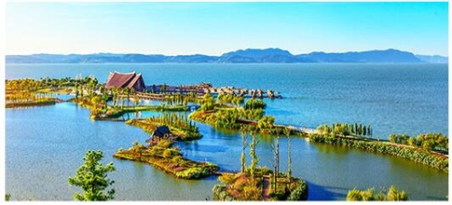 古滇精品濕地公園位于滇池南岸,園內有美麗的湖濱林帶,移步換景,野趣縱橫,水天一色,更可泛舟垂釣,親近自然。濕地內百余種植物相映成趣,乘船游覽濕地深處,舟船徐行碧水映彩云,優美景致,伸手可觸。